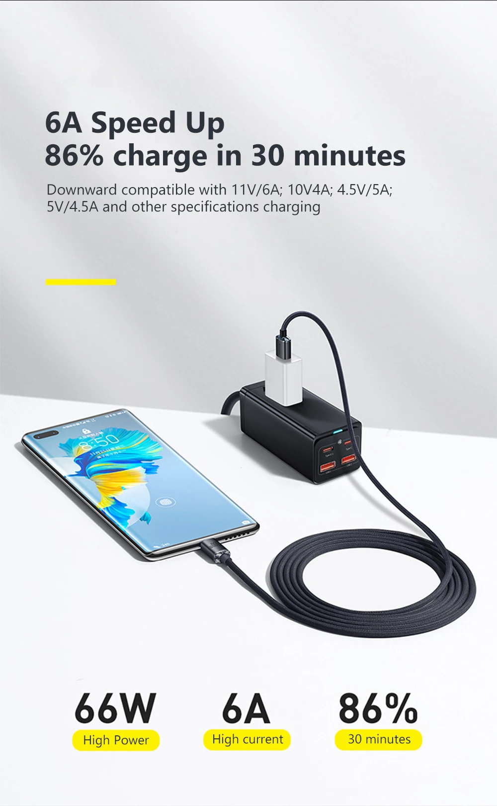 Support For Huawei mobile phone 66W Max super fast charge, 40W super fast charge;