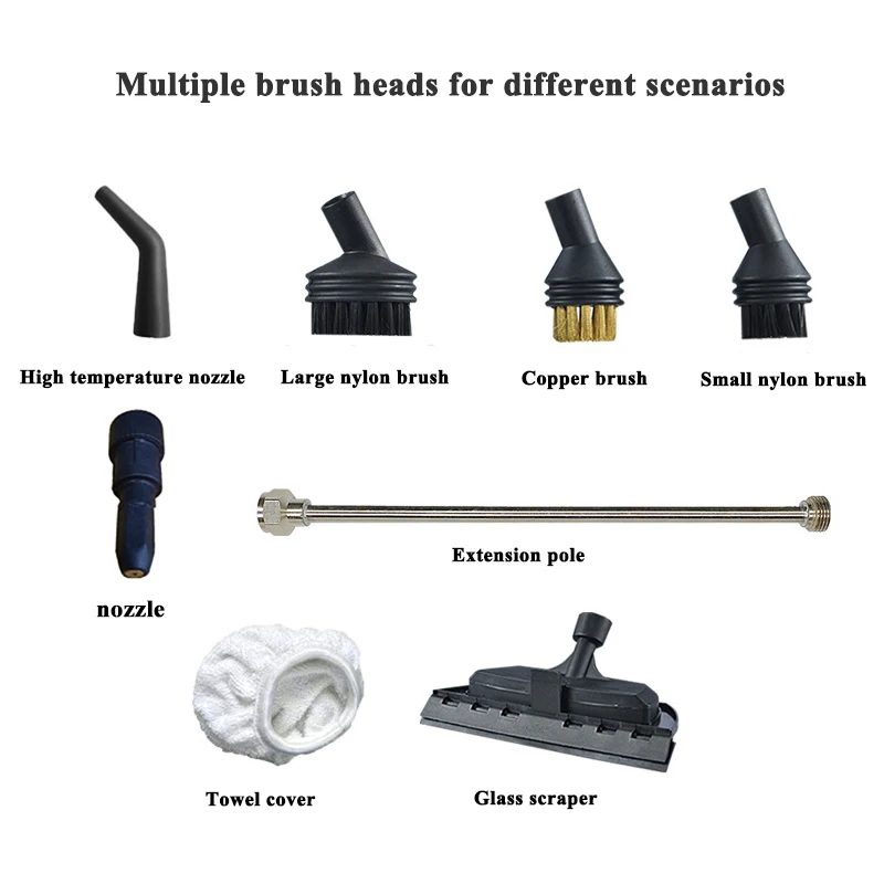it is suitable for 8mm steam cleaner nozzles inner diameter size , it can match with steam spray gun. only including the brushes as the main picture shows. not including others.